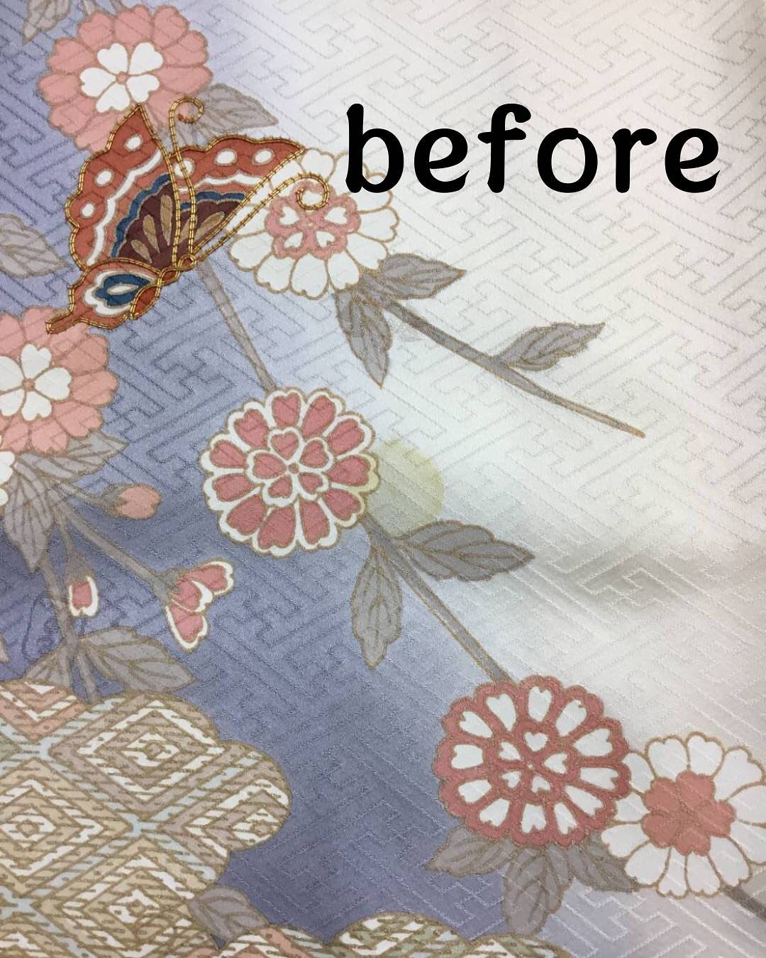 お着物しみ抜き before after #着物お手入れ#着物相談#着物直し#悉皆#悉皆屋#着物メンテナンス#着物お直し#着物しみ抜き#着物染色補正#着物丸洗い#着物好き#着物生活#きもの染色補正ときわ#着物撮影#着物でお出掛け