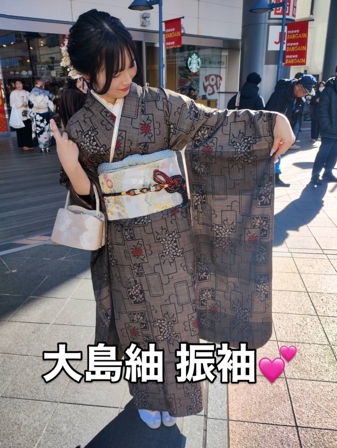 成人おめでとうございます㊗️ 昨日の成人式はお天気にも恵まれ、 華やかな振袖姿や凛々しいスーツ姿の方々が 集まり賑やかでした 紬は日常着ですが大島紬は独特の光沢と手触り 深い色合い絣模様が特徴の高級品です✨ 珍しい大島紬の振袖💕 終始笑顔が絶えず、渋くて大人可愛いお姿を とらせていただきました❤️ こちらも嬉しくなる素敵な日でした✨ ありがとうございます #着物お手入れ#着物相談#着物直し#振袖#成人式